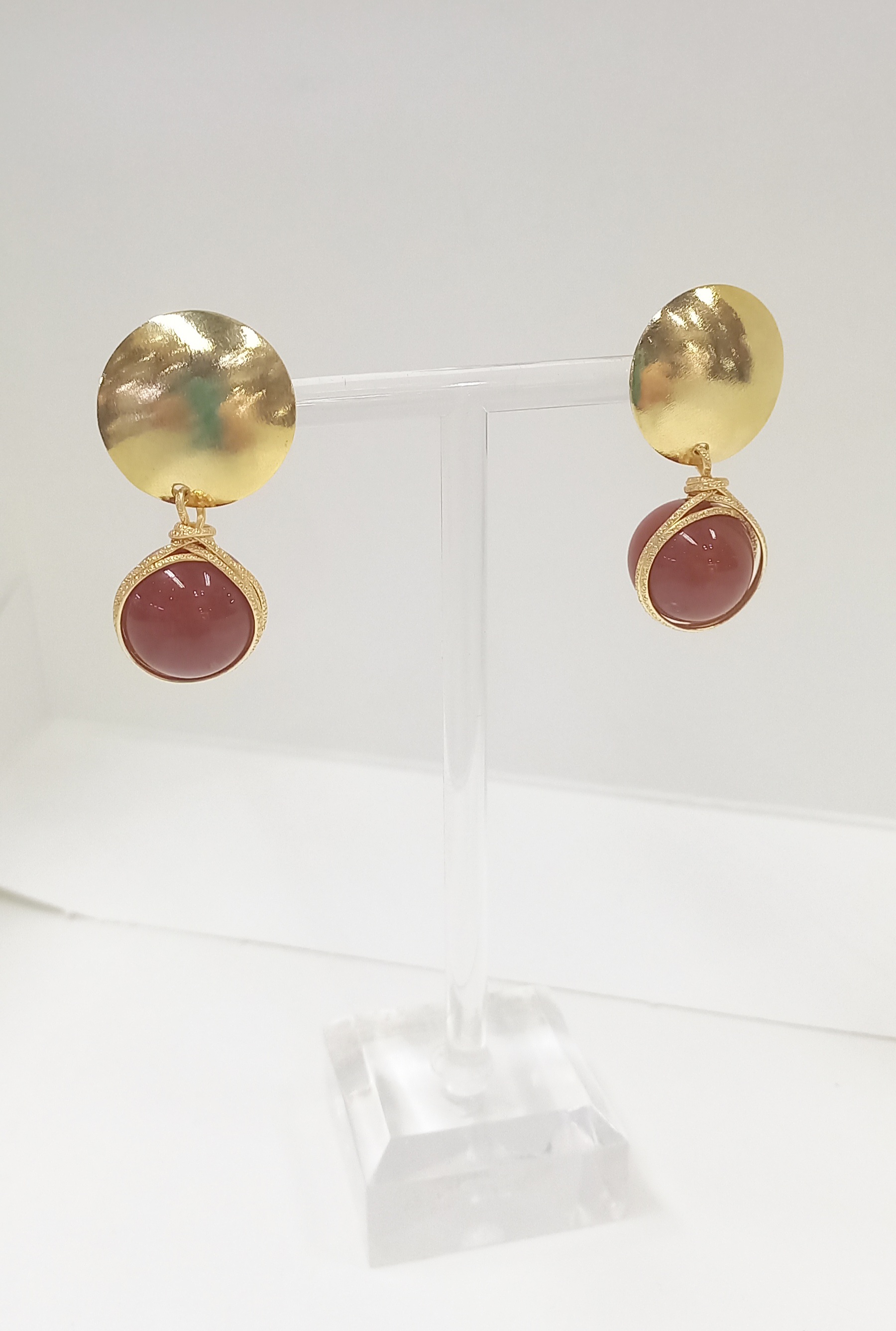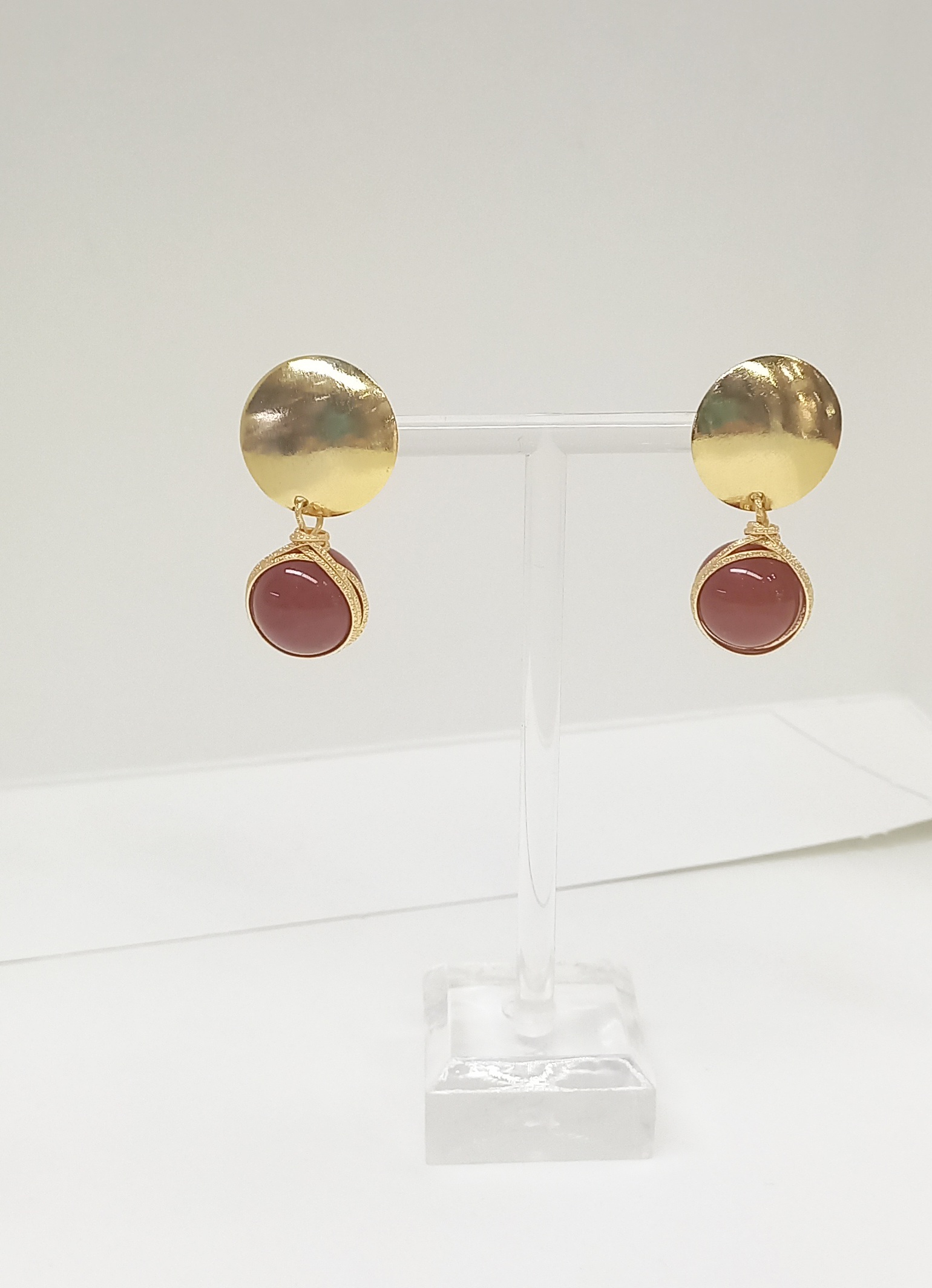 Zarcillos tipo domo con baño de oro24k y colgante de piedra natural Cornalina.