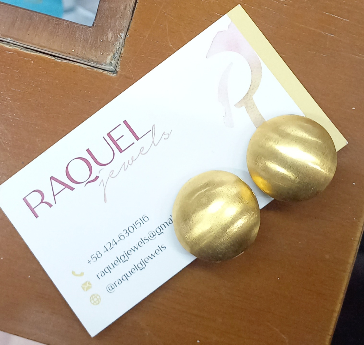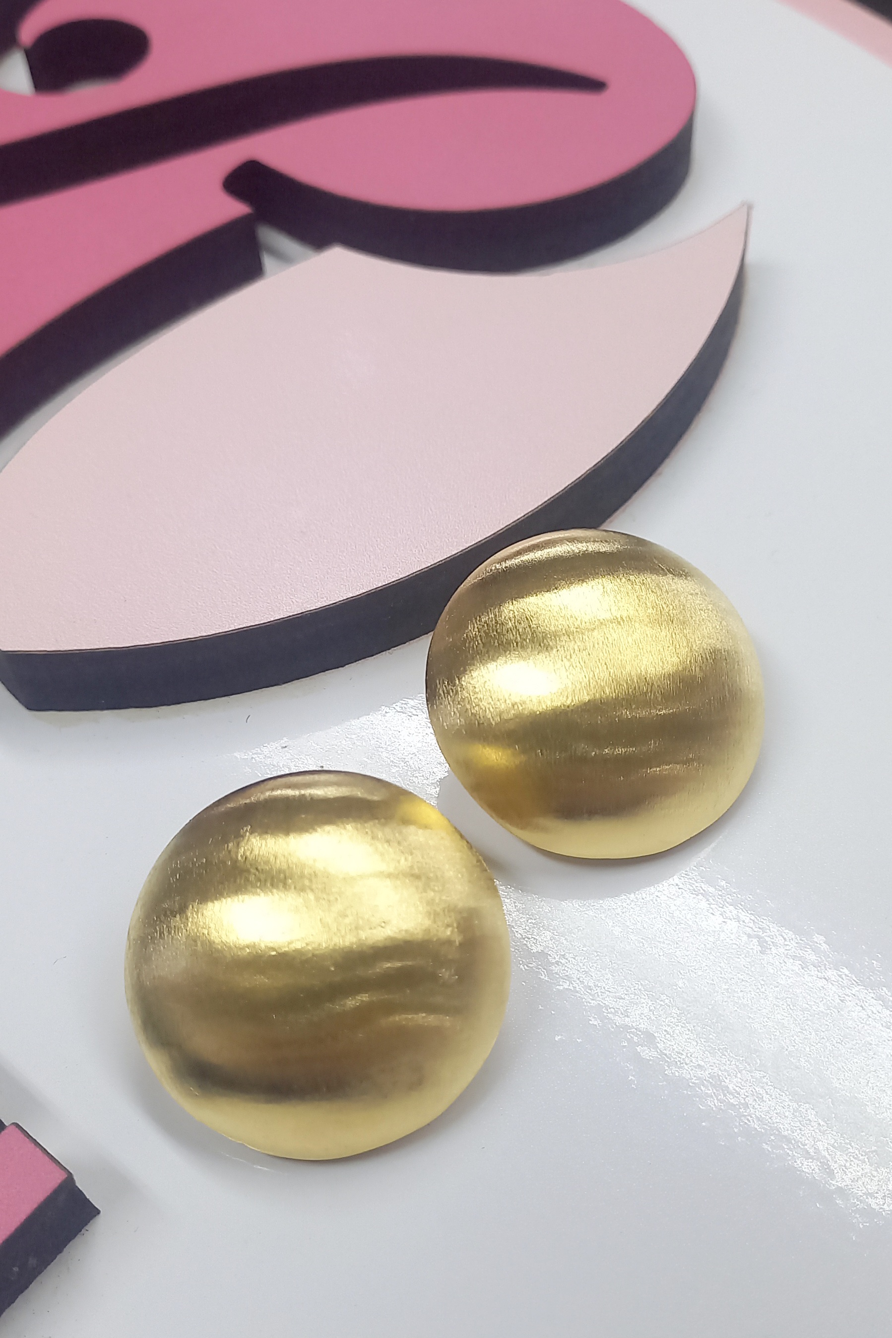 Zarcillos tipo domo con baño de oro24k con cierre de click (a presion), ideal para quienes no usen cierre tipo argolla.